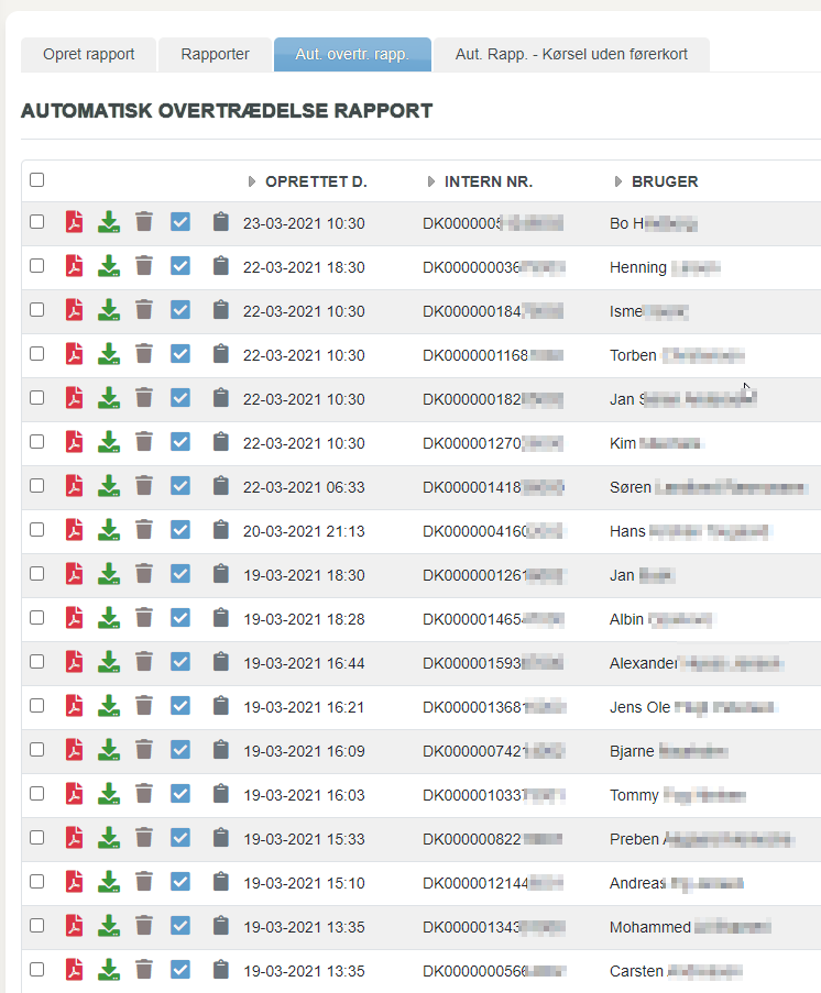 I Tacho Online har du tilgang til en større samling av rapporter i blant annet. brudd, aktivitetsdetaljer, kjøretid, kjøring uten førerkort og mange flere